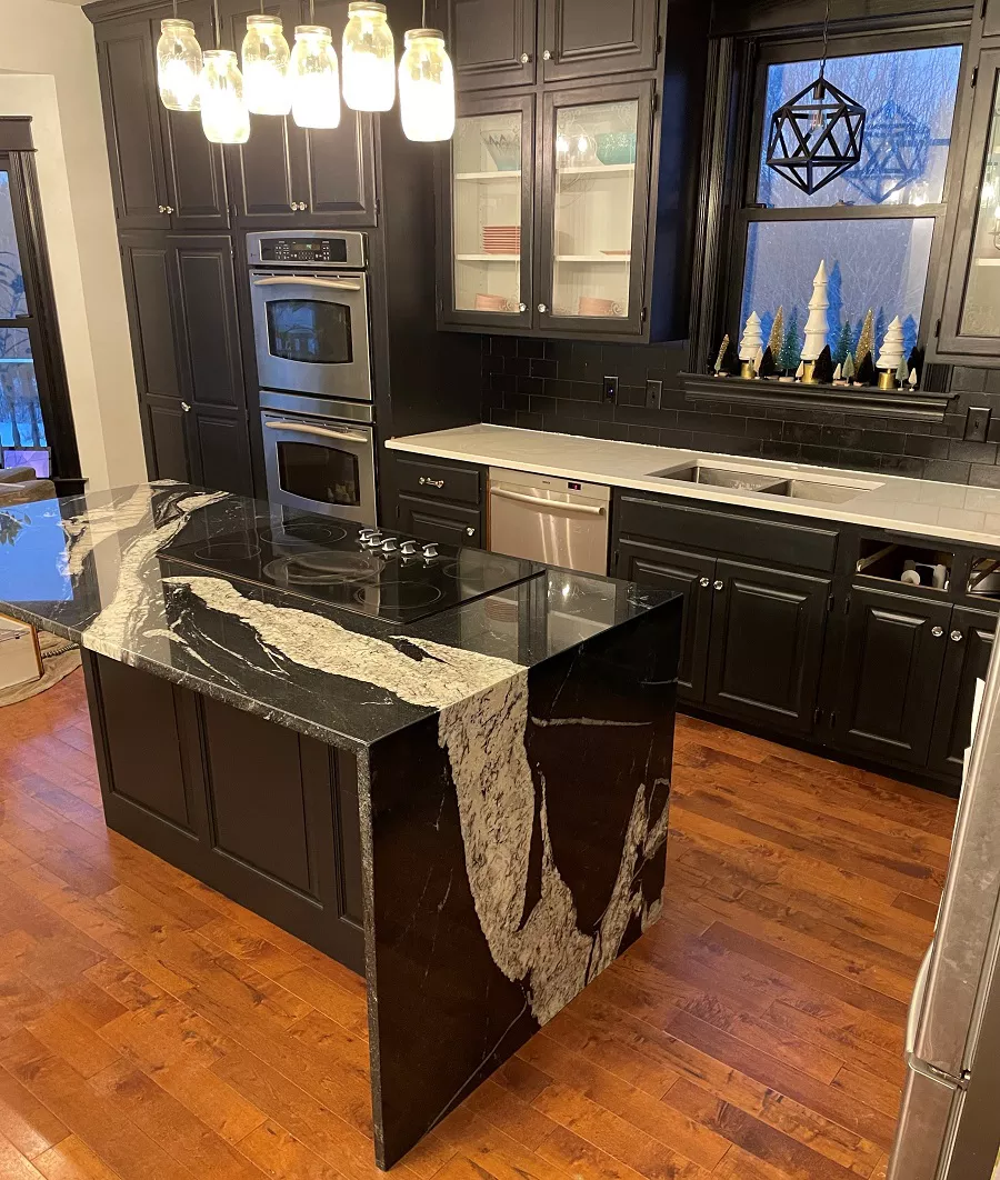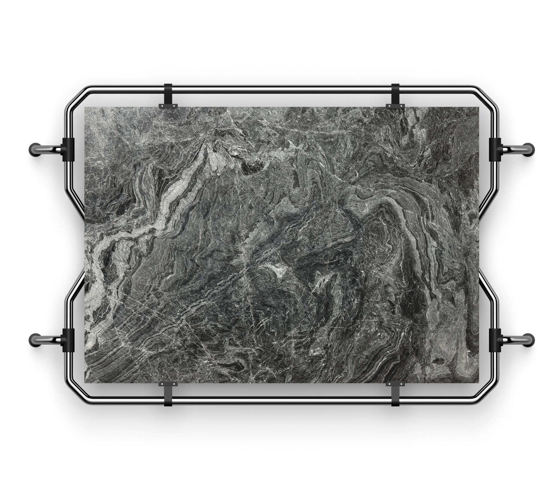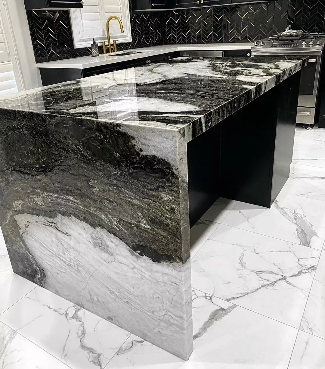 یُضفي هذا التباین اللوني الفرید شعورًا بالفخامة والقوة على المكان، ویتميّز بواجهات فریدة في التصميمات الداخلية الحدیثة. یُضفي السطح المصقول والطبيعي لهذا الحجر واجهاتٍ تُشبه الأعمال الفنية.