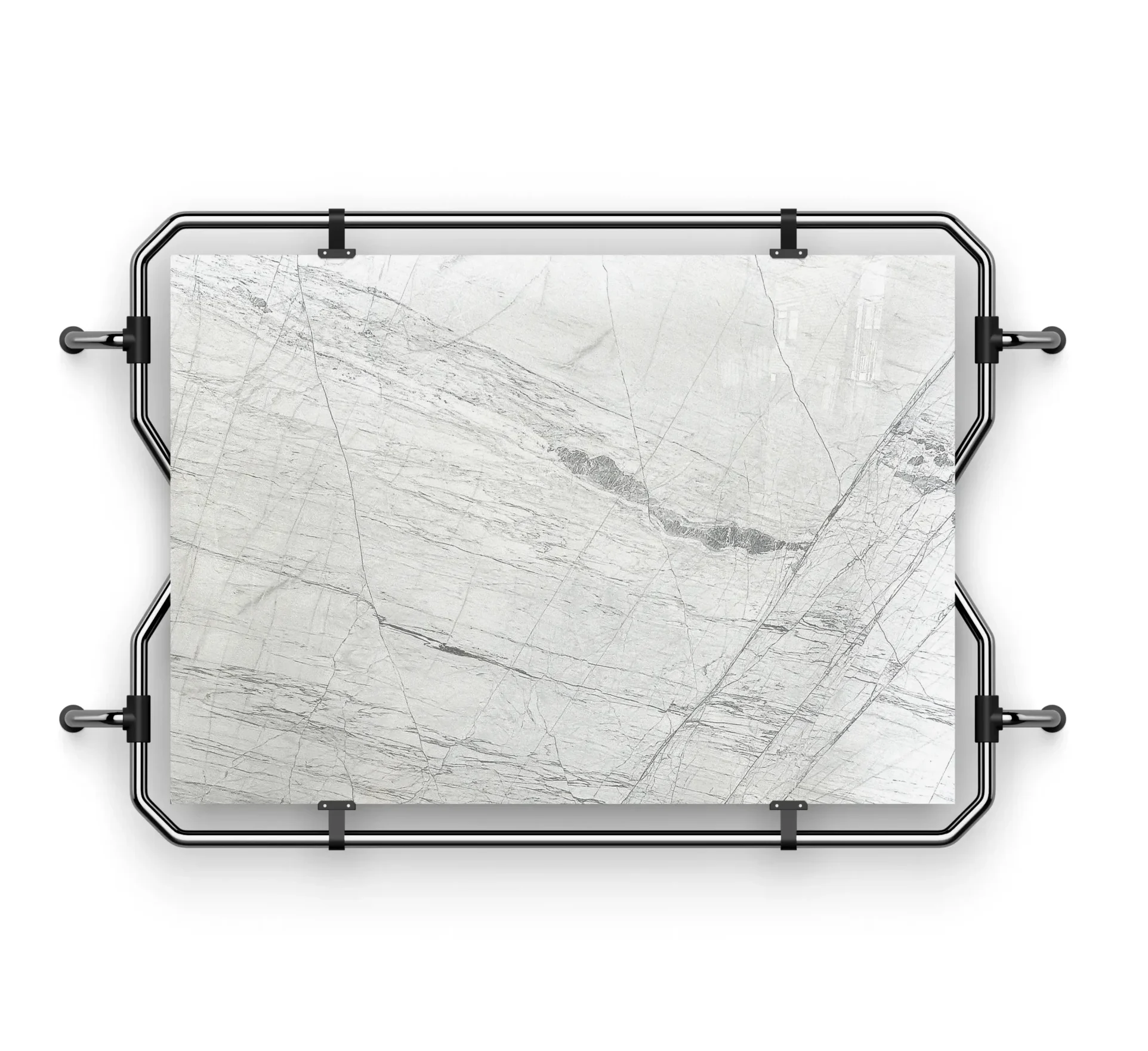في بعض الأمثلة، تظهر عروق ذهبية أیضًا، مما یُضفي لمسةً من الفخامة على الواجهة. یُعد من أكثر الخيارات شيوعًا للمساحات ذات الطابع الداكن والثقيل. الاستخدامات المقترحة: