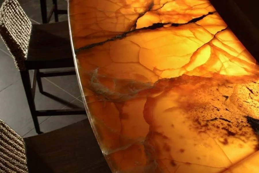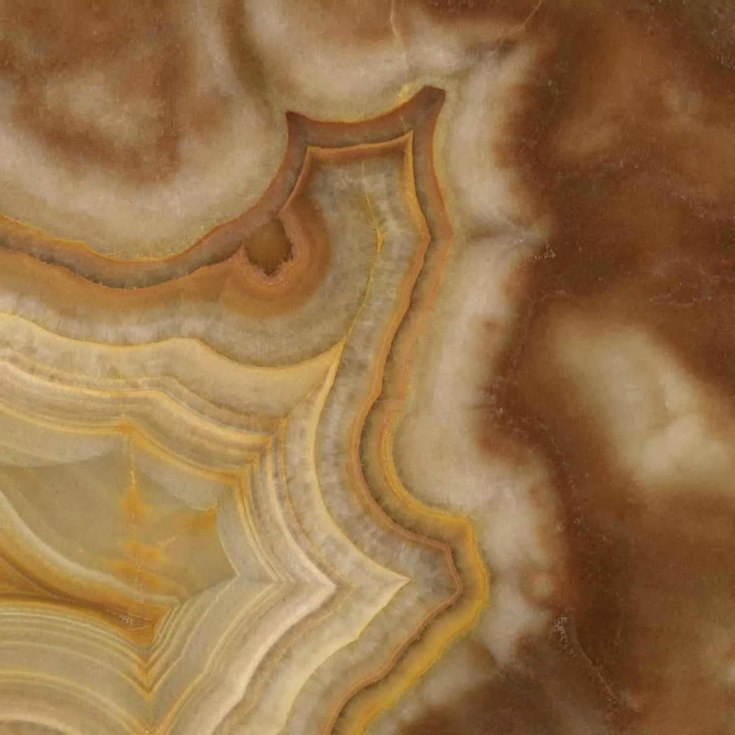 Brown Onyx is a stunning variety of chalcedony stone, known for its rich, layered tones ranging from soft tan to deep chocolate brown. Its natural banding and waxy luster give it a warm, organic appearance that’s perfect for elegant interiors and ornamental design.