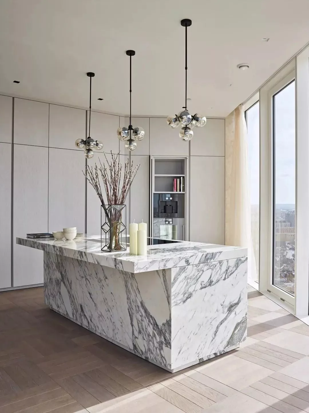 This marble is often processed in bookmatched and fourmatched slabs which can create a mesmerizing scene.