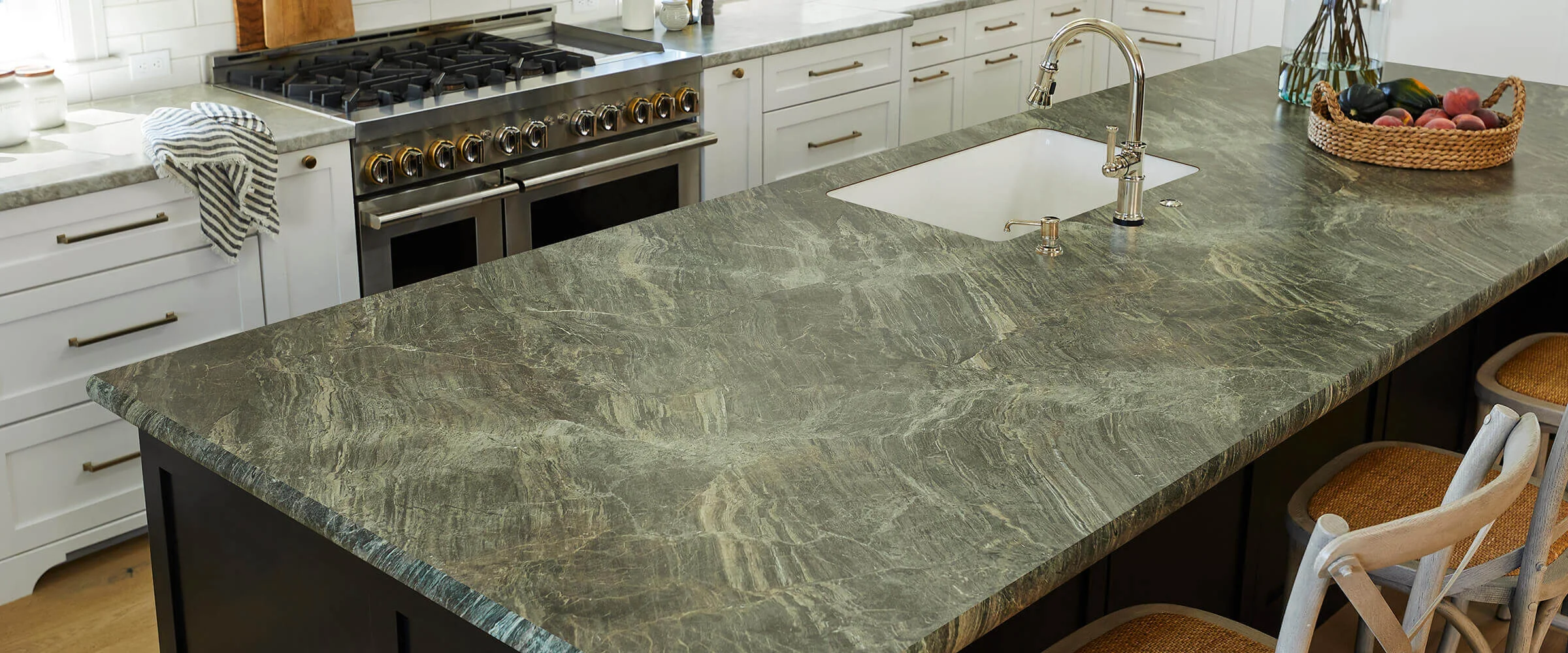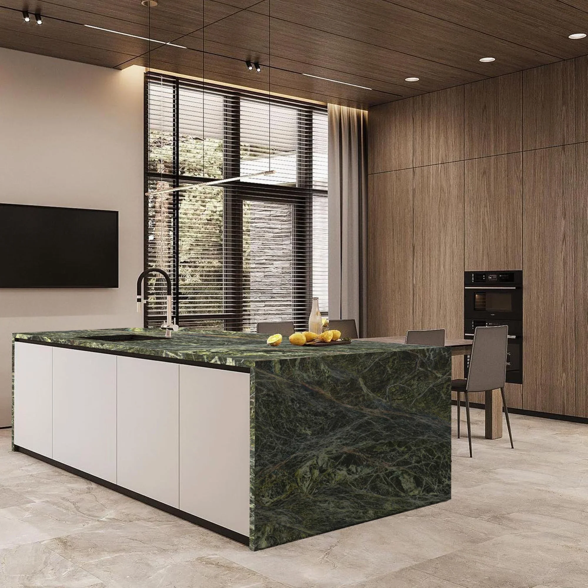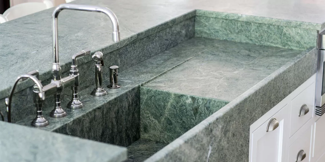 Using this type of stone in humid and warm climates is highly recommended, due to its lower water absorption and high pressure resistance. In addition, its unique appearance and leathering polishing has made G-107 green granite look special in luxury projects, as well as a preferred option for nature-theme interior and exterior designs.